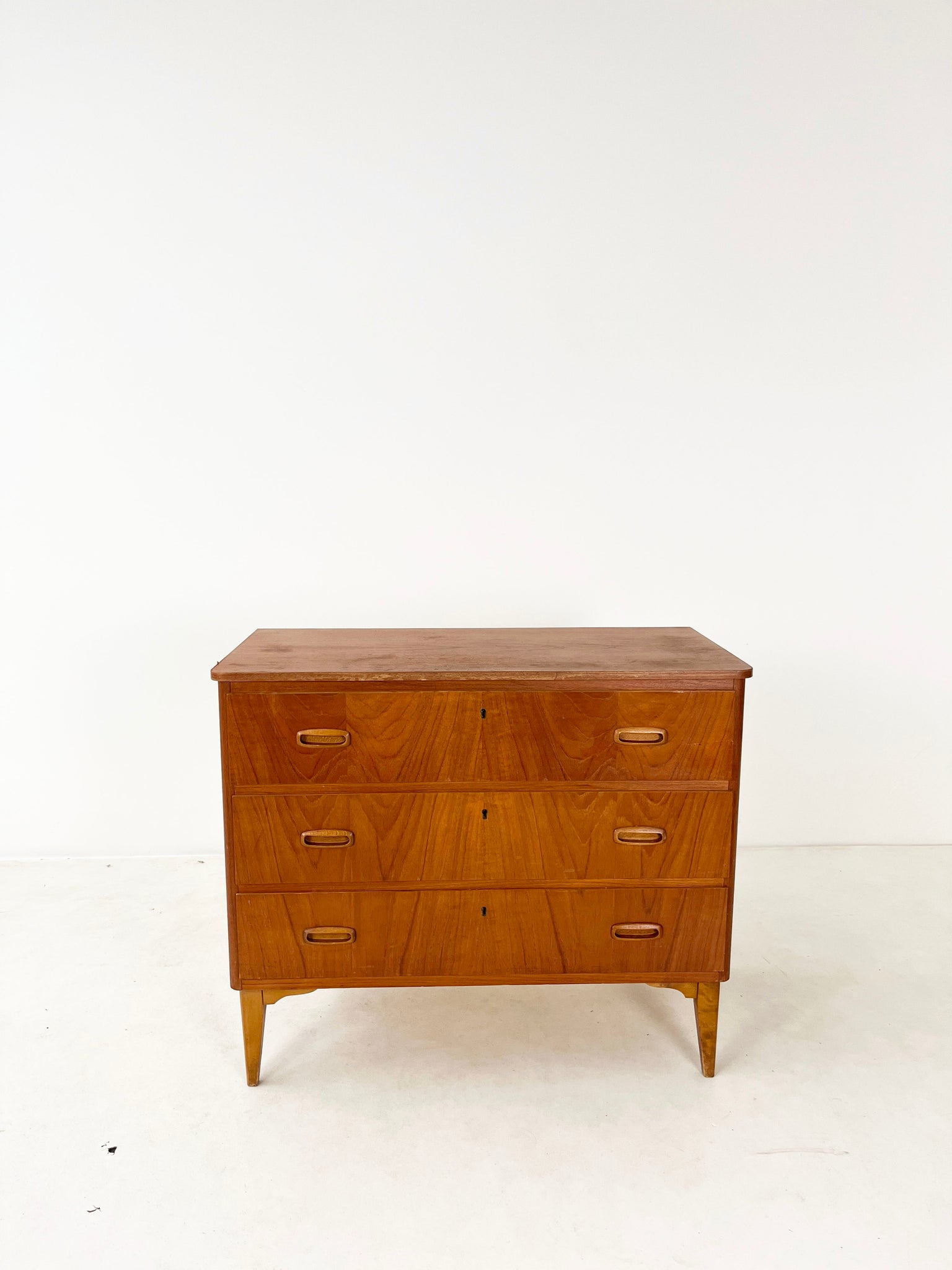 Klassieke teakhouten ladekast uit Zweden. De bovenkant heeft wel wat vlekjes, te zien in de foto's.