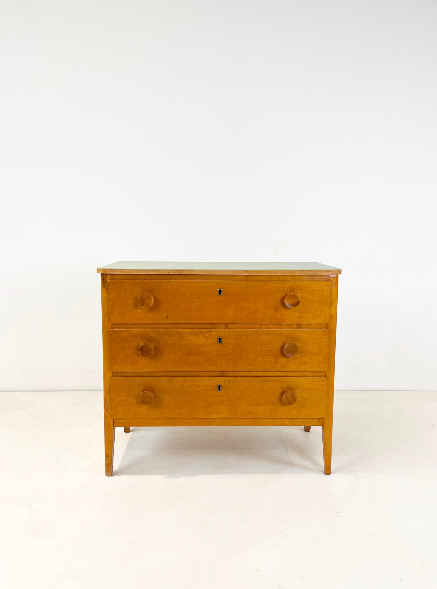Cute reworked vintage drawer set, light green painted top. Not in perfect condition, but a great and well-priced piece!